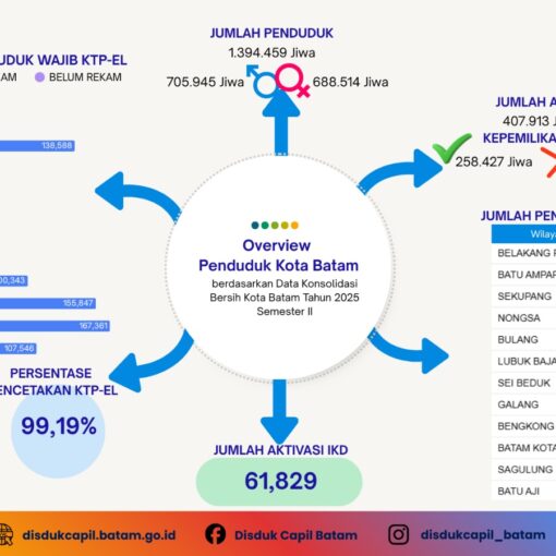 Halo Sobat DukSTAR! ✨ Tahukah kamu berapa jumlah penduduk Kota Batam saat ini? Berdasarkan Data Konsolidasi Bersih (DKB) Kota Batam Tahun 2025 Semester II, perkembangan kependudukan kita semakin pesat lho! Yuk, simak rangkuman lengkapnya di bawah ini:1. Total PopulasiTotal penduduk kita telah mencapai 1.394.459 Jiwa, dengan komposisi: Laki-laki: 705.945 JiwaPerempuan: […]