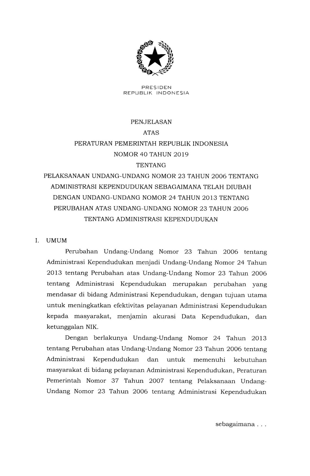 Peraturan Peraturan Pemerintah Nomor 40 Tahun 2019 Oleh␣ disdukcapil|Telah Terbit 2 Juli 2020 Post Views: 1